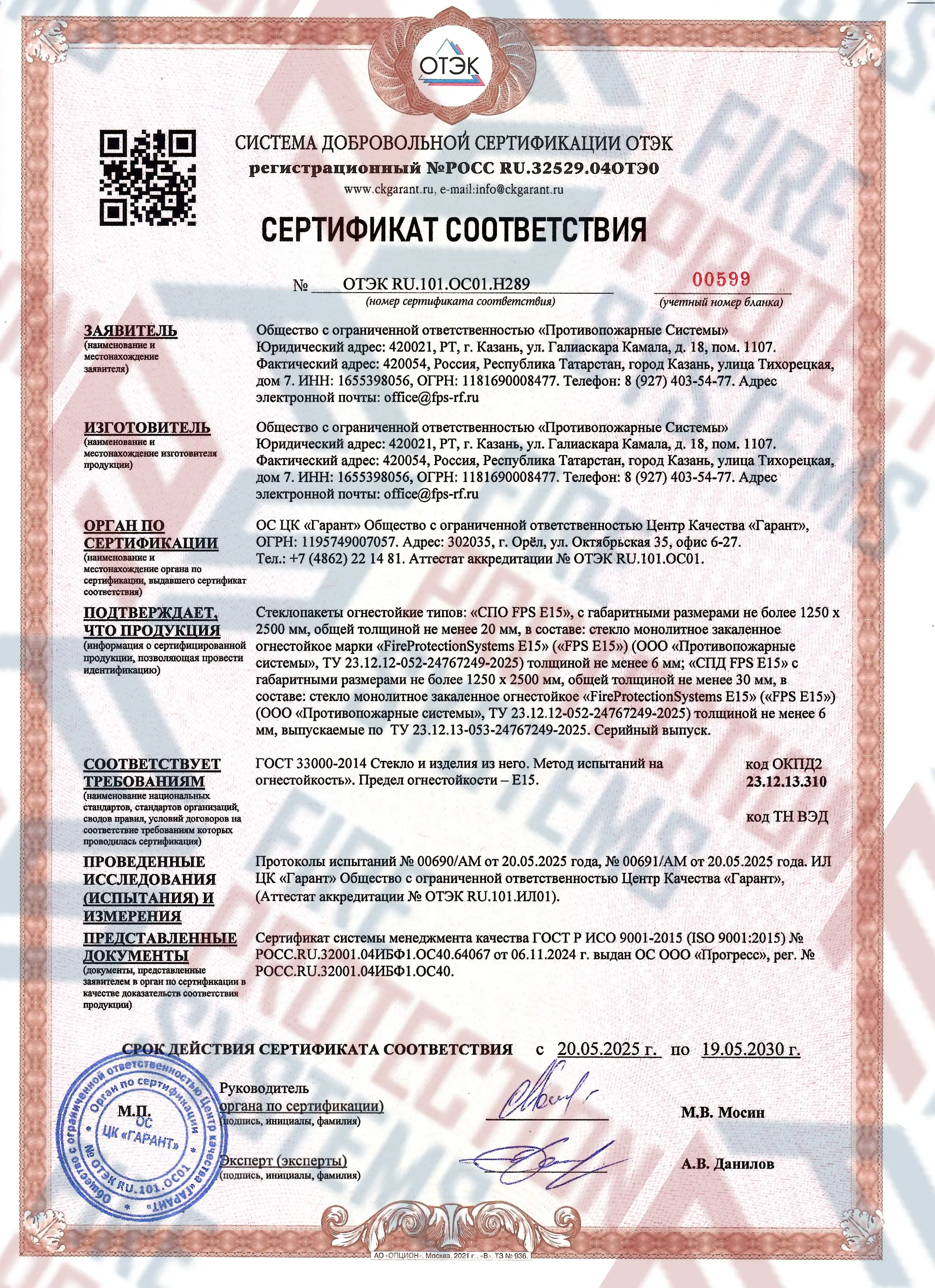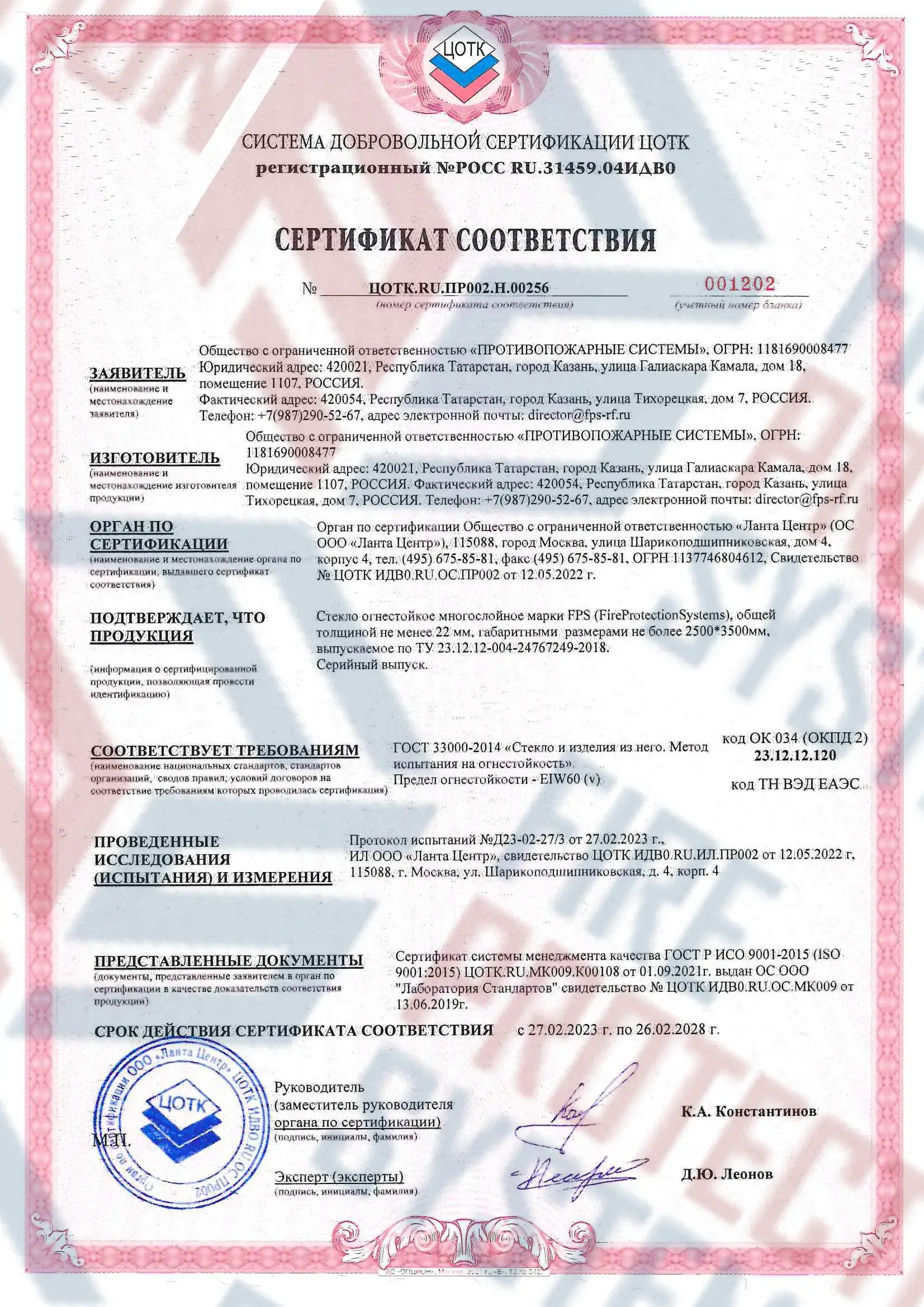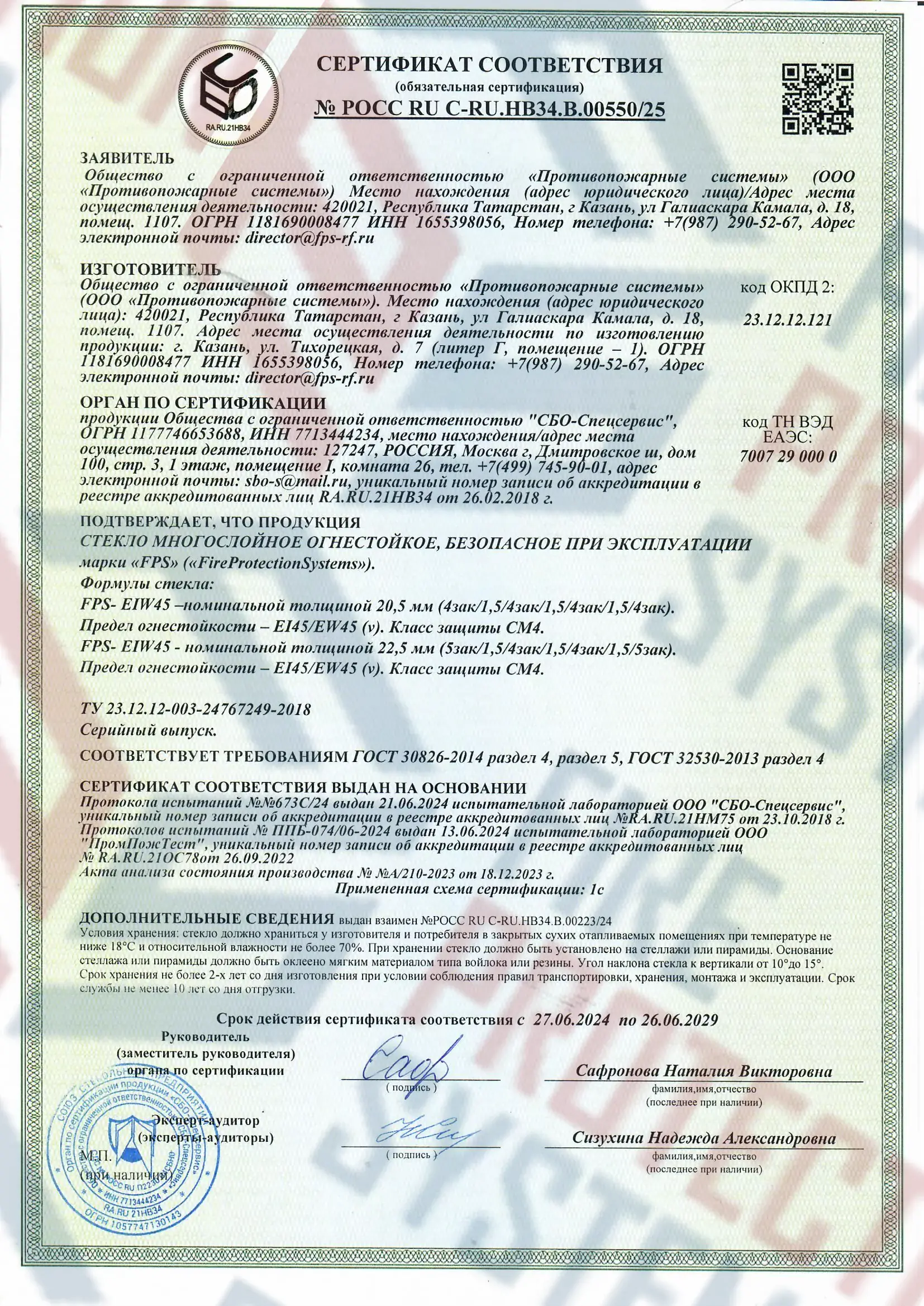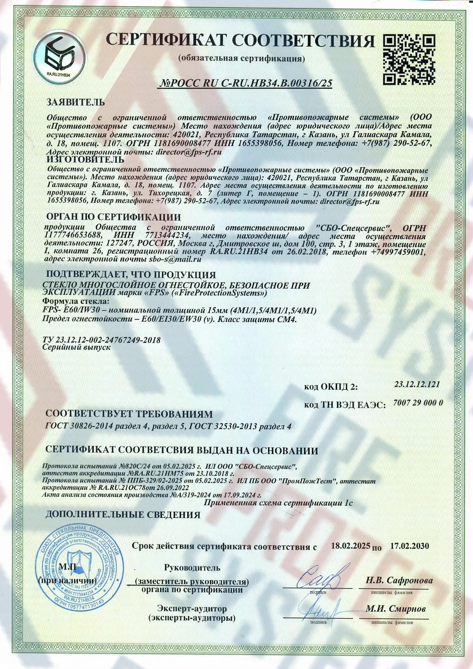 Противопожарное стекло в Саранске от производителя «Fire Protection Systems». Мы изготавливаем многослойные стеклопакеты из огнеупорного противопожарного стекла. В нашем каталоге вы найдёте противопожарные стёкла по ГОСТу EIW15-EIW60 с огнестойкостью от 15 до 60 минут. Изготовление противопожарных стёкол на заказ стандартных и нестандартных размеров. Продукция сертифицирована и доставляется по всей России. Узнайте как купить противопожарное стекло от производителя у специалиста компании «Fire Protection Systems».