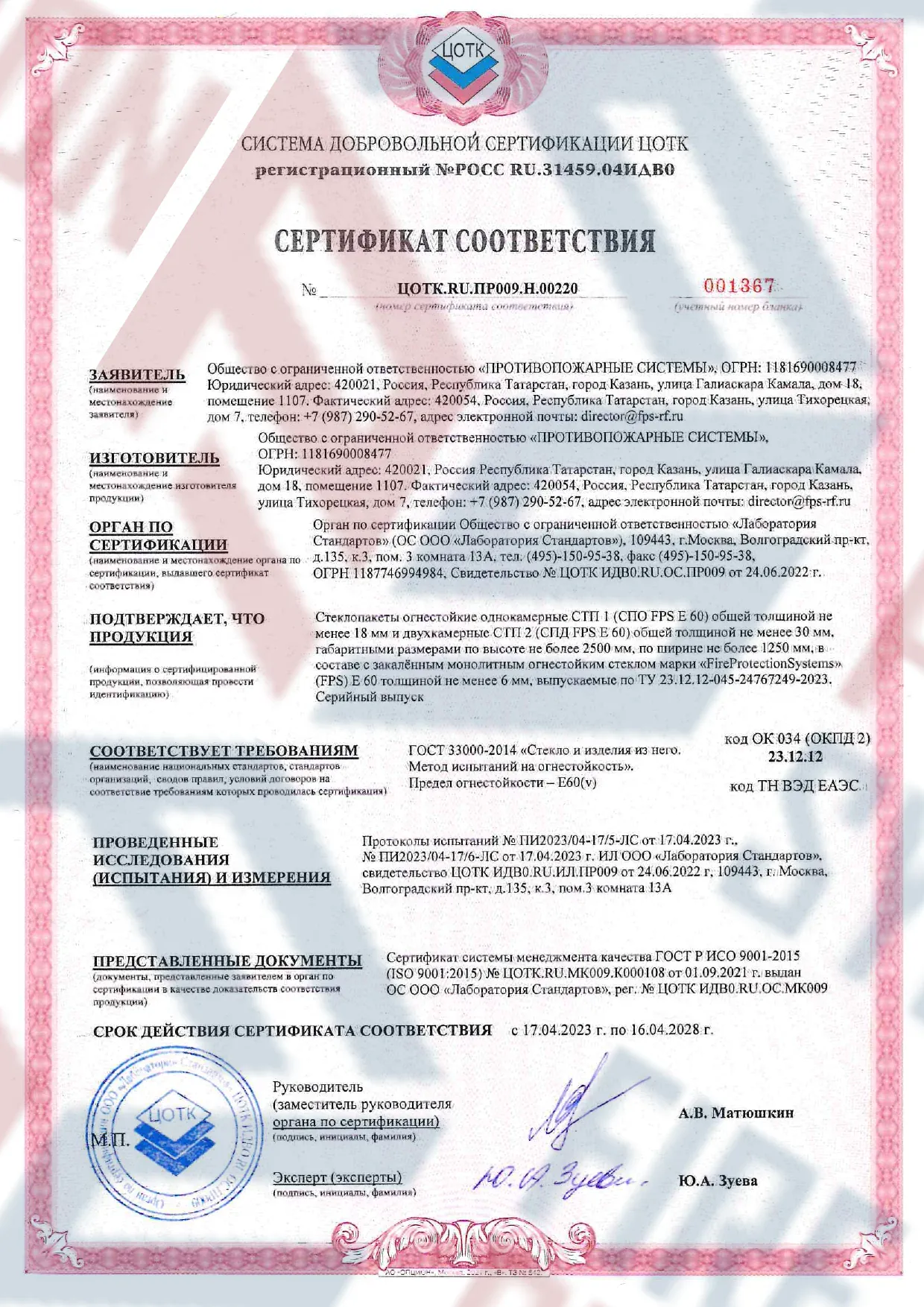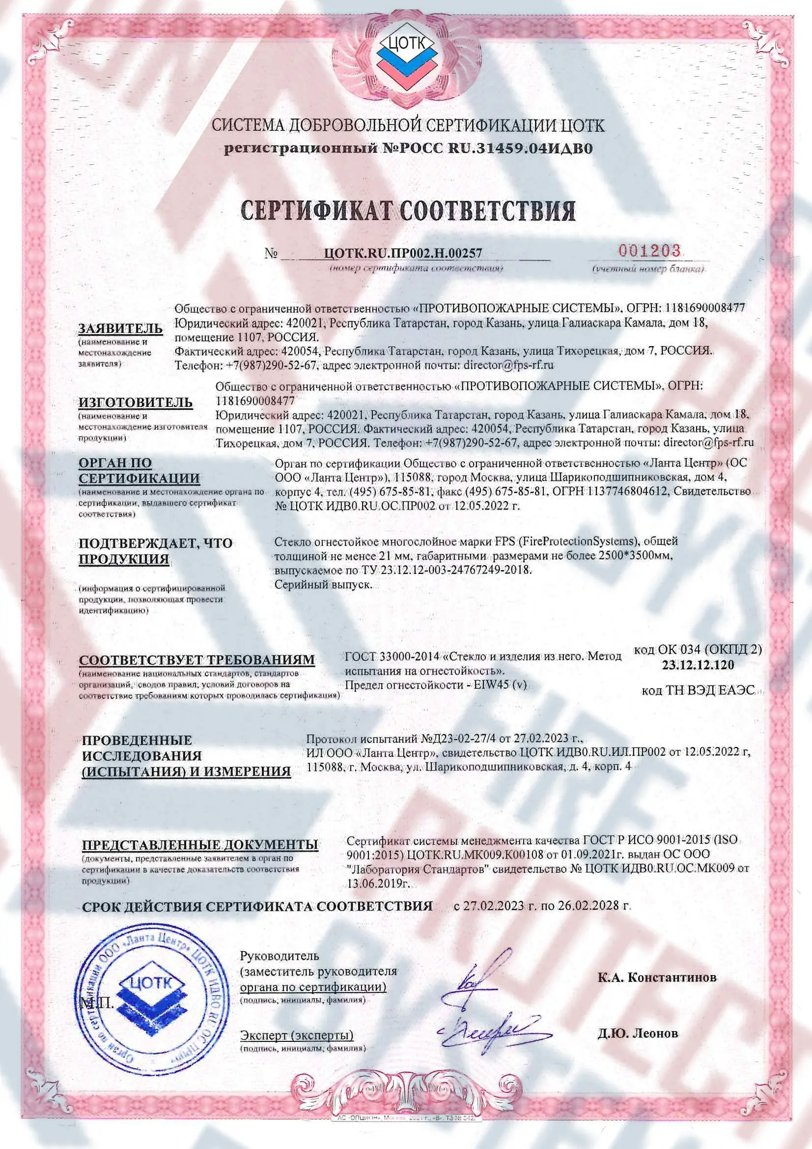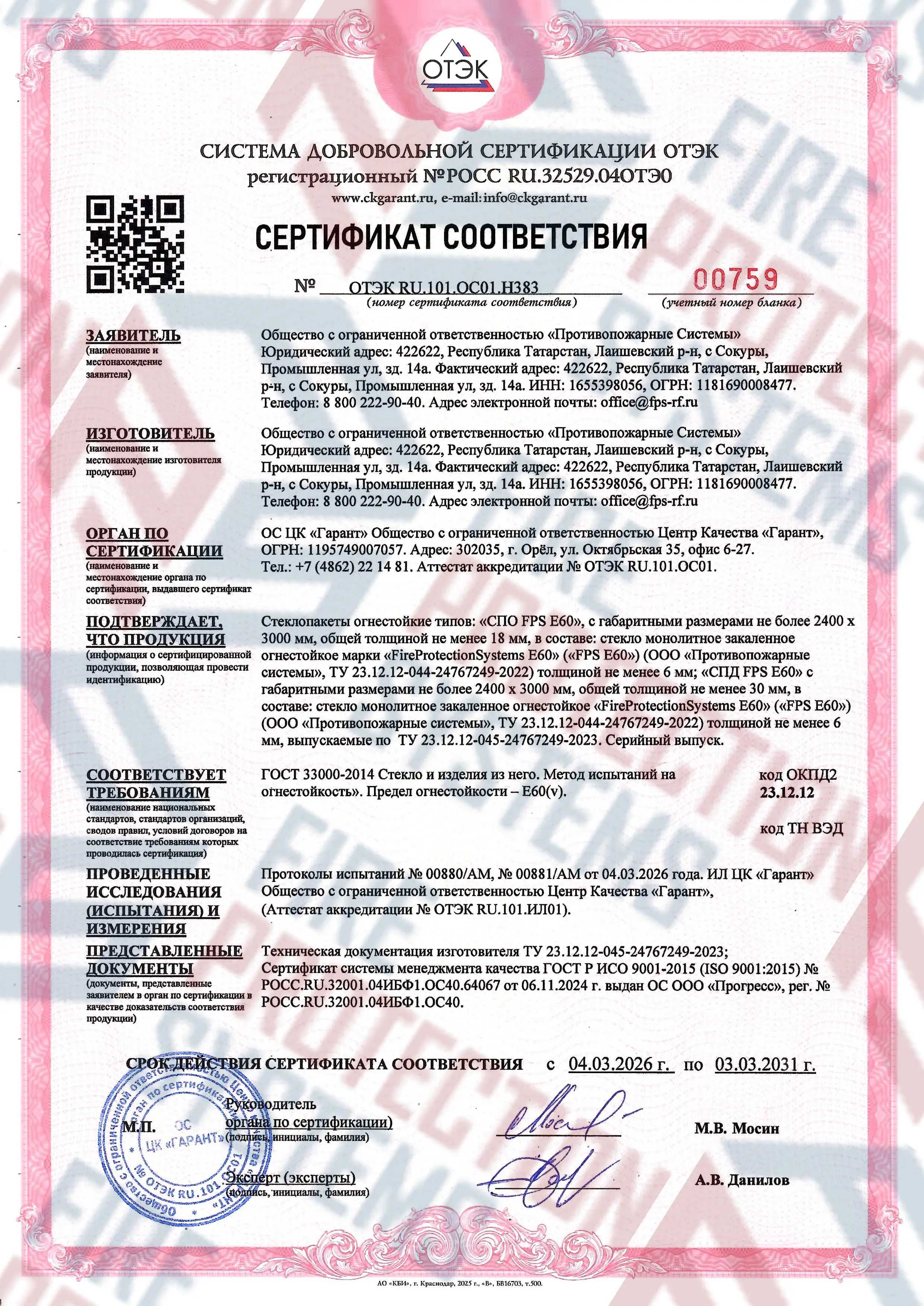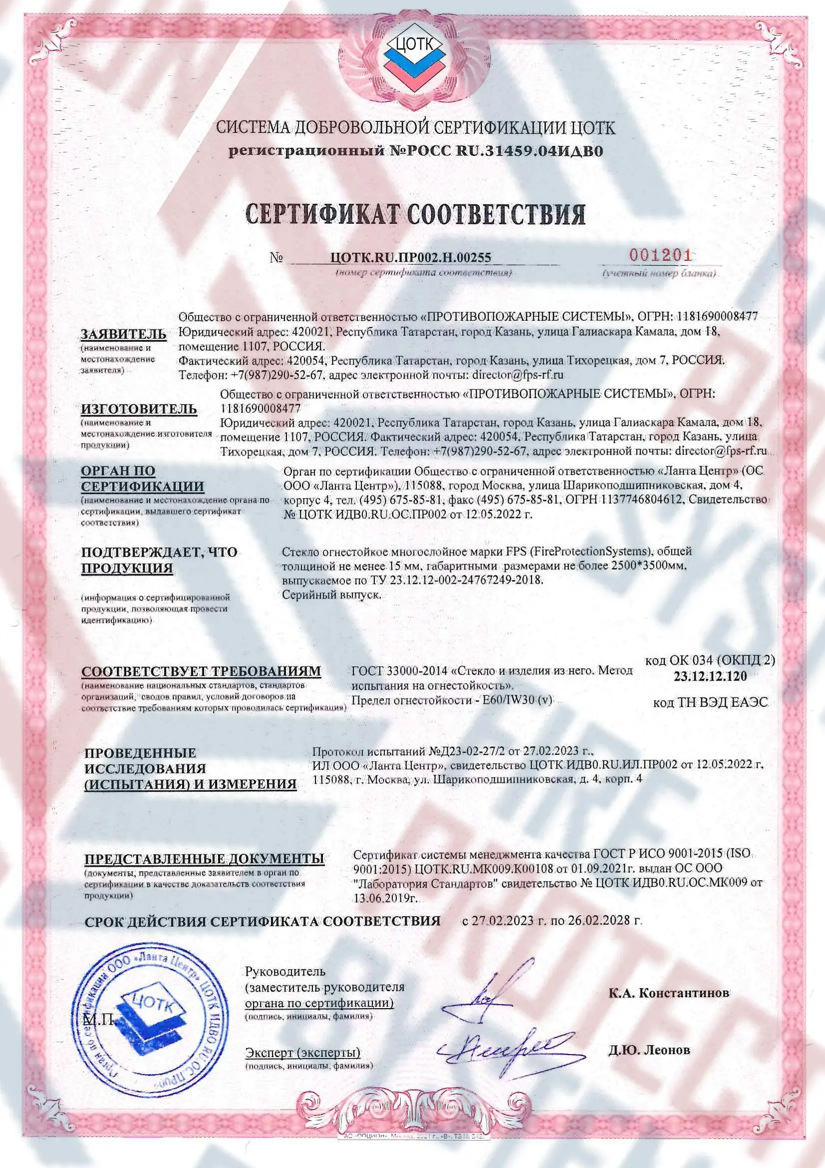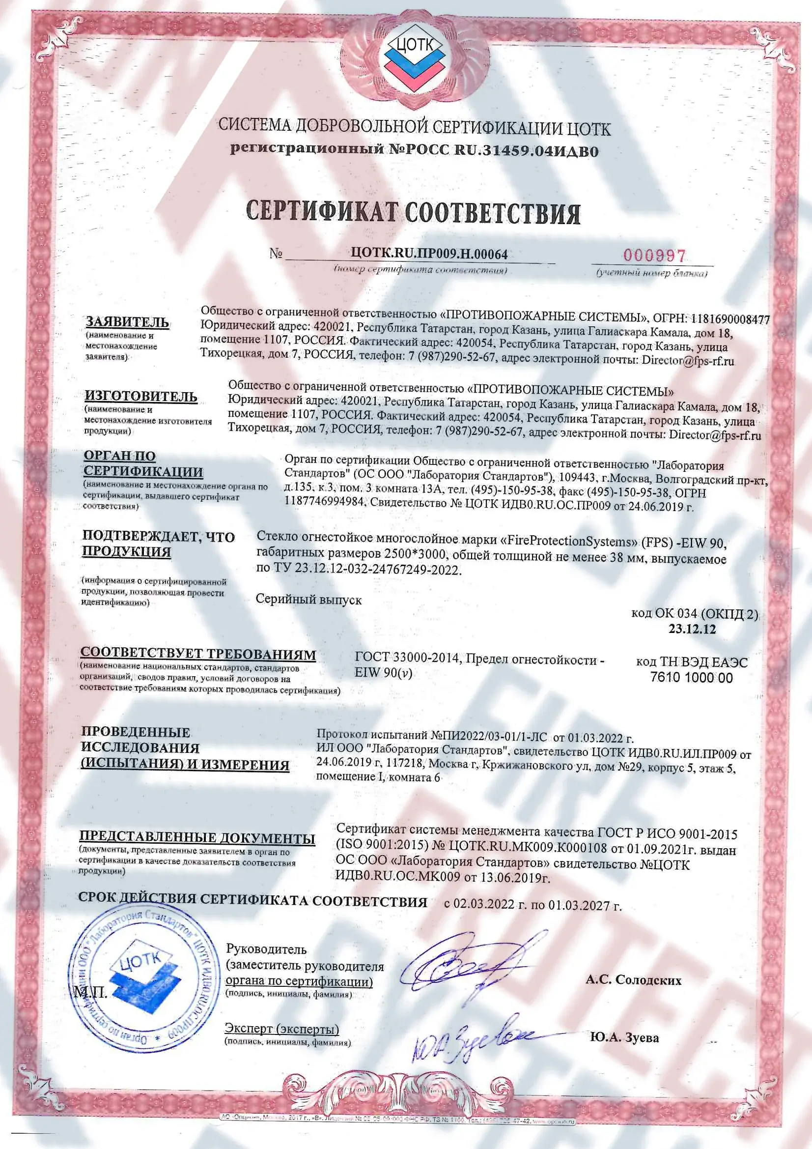 Противопожарное стекло в Саранске от производителя «Fire Protection Systems». Мы изготавливаем многослойные стеклопакеты из огнеупорного противопожарного стекла. В нашем каталоге вы найдёте противопожарные стёкла по ГОСТу EIW15-EIW60 с огнестойкостью от 15 до 60 минут. Изготовление противопожарных стёкол на заказ стандартных и нестандартных размеров. Продукция сертифицирована и доставляется по всей России. Узнайте как купить противопожарное стекло от производителя у специалиста компании «Fire Protection Systems».