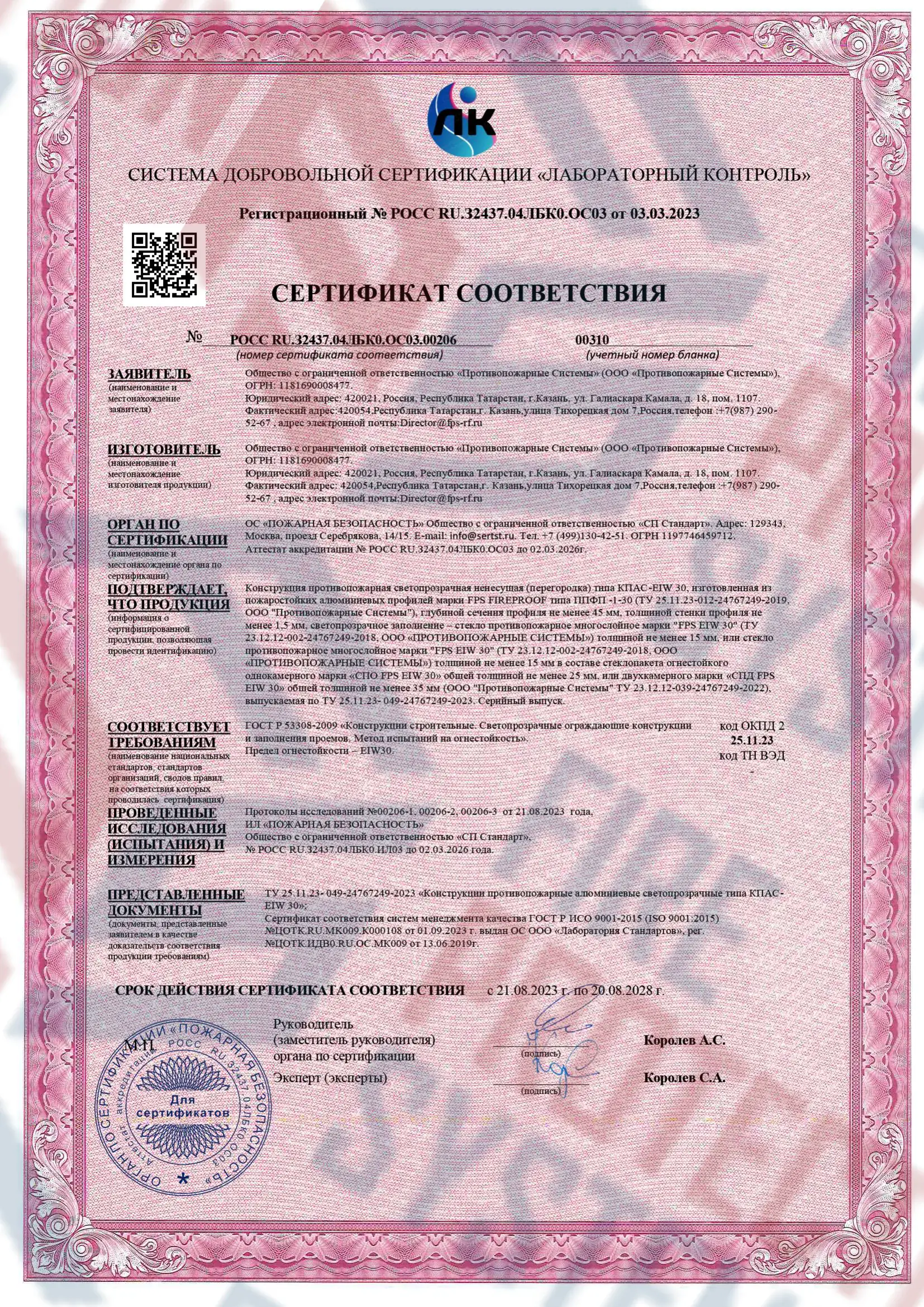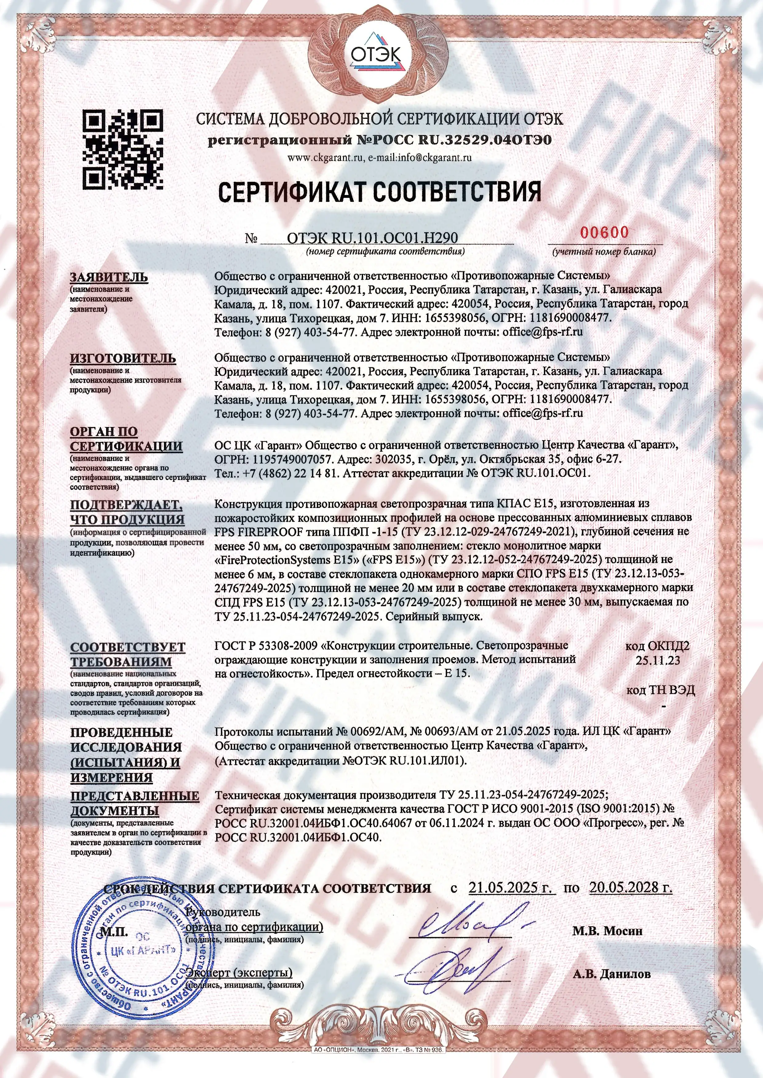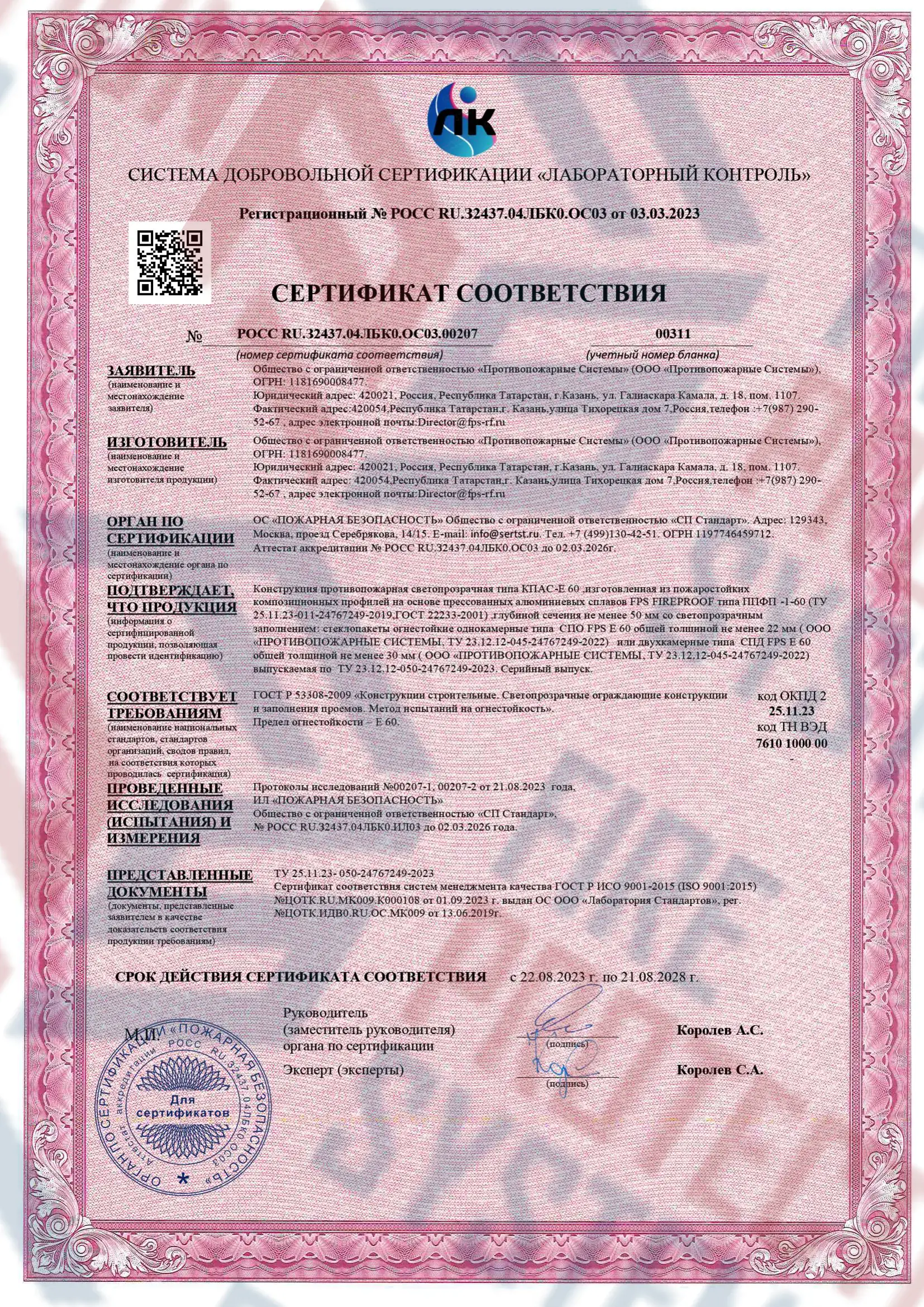 Сертификация по ГОСТ и международным стандартам — соответствуют требованиям пожарной безопасности.